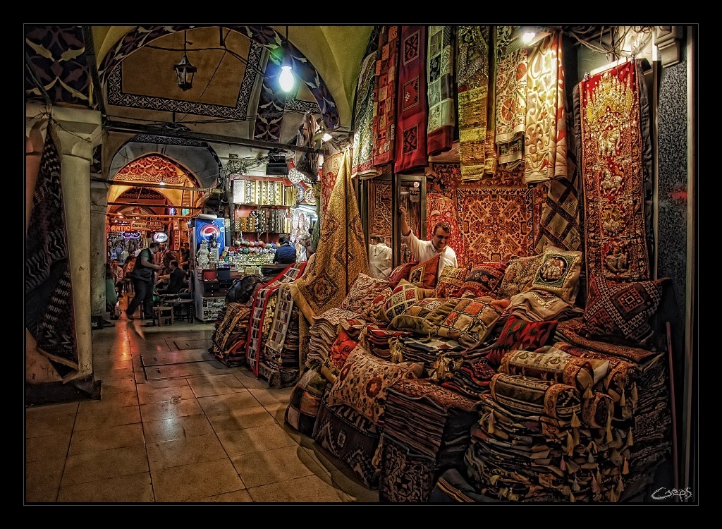 Αργότερα, όμως, και με την ανάπτυξη του τουρισμού, άρχισαν να εξευρωπαΐζονται και σήμερα έχουν την γνωστή μορφή των μαγαζιών. Μέσα στο δαιδαλώδες αυτό συγκρότημα μπορείτε να βρείτε ότι τραβάει η όρεξή σας. Χαλιά, υφάσματα, πασμίνες, ρούχα, τσάντες, δερμάτινα είδη, αντίκες, κοσμήματα (χρυσά, ασημένια, κεχριμπαρένια κ.α.), ναργιλέδες και πολλά πολλά άλλα. Τιρ: Ποτέ μα ποτέ μην δεχτείτε την αρχική τιμή που θα σας πουν. Απαραίτητη προϋπόθεση είναι να κάνετε αυτό που λέει και η ονομασία της αγοράς. Παζάρι. Και αν οι καταστηματάρχες σας το παίξουνδύσκολοι; Ε, μην σκάσετε. Τους λέτε απλά «οκ, I am going to another shop» και είτε θα σας κατεβάσουν και άλλο την τιμή (το πιθανότερο), είτε θα βρείτε πιο κάτω κάτι άλλο ακόμα καλύτερο. Εξάλλου, μην ξεχνάτε! 3.000 μαγαζιά είναι αυτά.