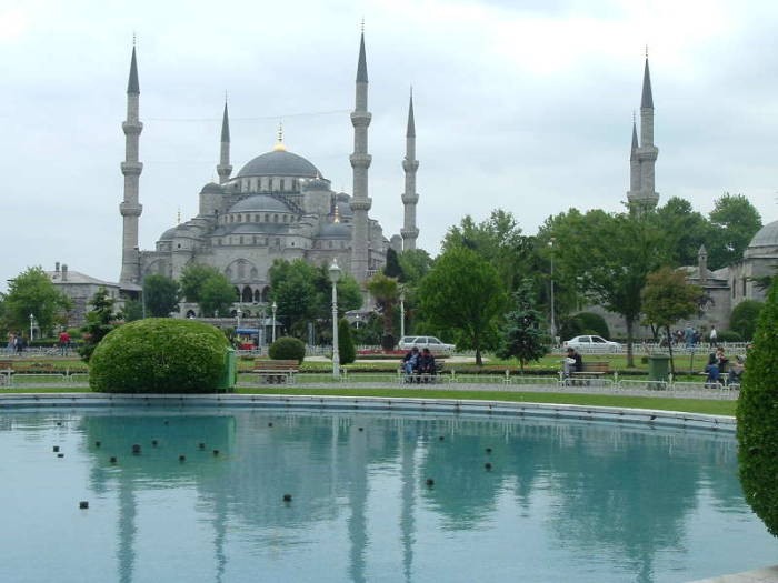 Ένα από τα μεγαλύτερα «μνημεία» της τούρκικης ιστορίας, ακριβώς απέναντι από την Αγία Σοφία είναι το Μπλε Τζαμί. Και βάζω εισαγωγικά, γιατί οι επισκέπτες πηγαίνουν για να θαυμάσουν την αρχιτεκτονική του, όμως το Μπλε Τζαμί λειτουργεί ως τέμενος. Για αυτό και είναι απαραίτητο να ξέρουμε τις ώρες προσευχής των Μουσουλμάνων, προκειμένου να μην ενοχλήσουμε τους πιστούς την ώρα που προσεύχονται. Το Μπλε Τζαμί χτίστηκε το 1609 (μέχρι το 1616) με εντολή του Σουλτάνου Αχμέτ Α΄ στον αρχιτέκτονα Σεντεφχάρ Μεχμέτ Αγά. Η βασική διαταγή, ωστόσο, ήταν η εξής: Το Τζαμί να ξεπερνά σε αίγλη την Αγία Σοφία. Και πραγματικά ο Σεντεφχάρ έφτιαξε ένα τζαμί με 6 μιναρέδες, εντυπωσιακό τρούλο και 21.000 μπλε πλακάκια ινζικ(από την περιοχή της Νίκαιας). Η κανονική του ονομασία είναι «Τζαμί του Σουλτάνου Αχμέτ Α΄(Σουλτναχμετ τζαμί) λόγω της κυριαρχίας των μπλε πλακιδίων στο εσωτερικό του επικράτησε η ονομασία «Μπλε Τζαμί».