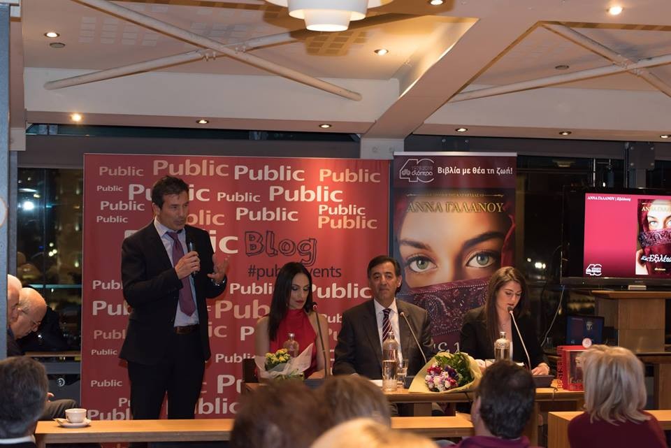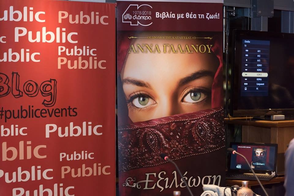 Εκεί στη γεμάτη από κόσμο η καφετέρια των Public στο Σύνταγμα πραγματοποιήθηκε η παρουσίαση του τελευταίου βιβλίου της τριλογίας "Οι Δρόμοι της Καταιγίδας. Η Εξιλέωση", της κυρίας Άννας Γαλανού.