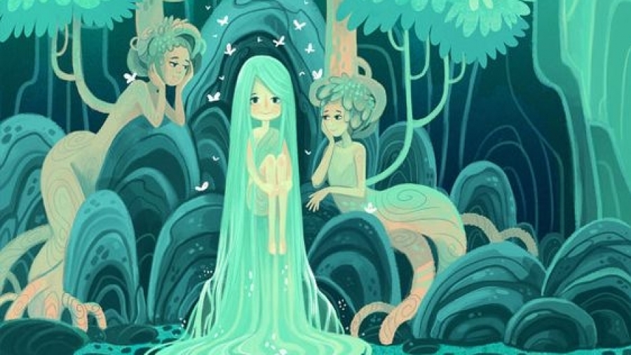 Η πηγή του πιο γλυκού ρυακιού στο δάσος είναι το μικρό πνεύμα της φύσης. Το παρακολουθούν δύο δρυάδες, έτσι δεν θα είναι ποτέ μόνο του.