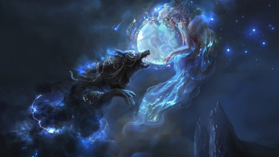 «Σελήνη τι έχεις; Γιατί είσαι κακόκεφη;» ο Λύκος ψιθύρισε στιγμή που η Νυχτερινή Θεά για να ζεσταθούν πυροδότησε ένα μικρό σωρό από κλαράκια με μια γαλάζια ενεργειακή σπίθα, η οποία πήγαζε ανέσπερα μέσα στην χούφτα της.