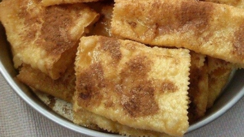 - Σε ένα μεγάλο βαθύ τηγάνι με μπόλικο καυτό λάδι , τοποθετούμε ένα ένα τα κομμάτια . Τα διπλώνουμε με δυο πιρούνια . Το κλασικό σχήμα είναι ο κύλινδρος αλλά και τα μαντηλάκια, οι φιόγκοι και τα γαρύφαλλα. Ένα-ένα κομμάτι που ψήνεται το βγάζουμε σε ένα σουρωτήρι για να στραγγίζουν τα λάδια του.